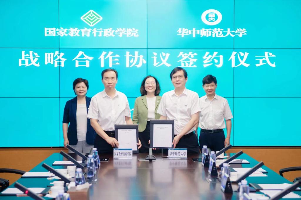 华大在线讯(记者 毛国樨)7月27日,国家教育行政学院与开云手机网战略合作协议签约仪式在开云手机网南湖综合楼举行。国家教育行政学院党委书记、常务副院长侯慧君、副院长于京天,校党委书记赵凌云、校长郝芳华、校党委副书记陈迪明出席。郝芳华主持签约仪式。