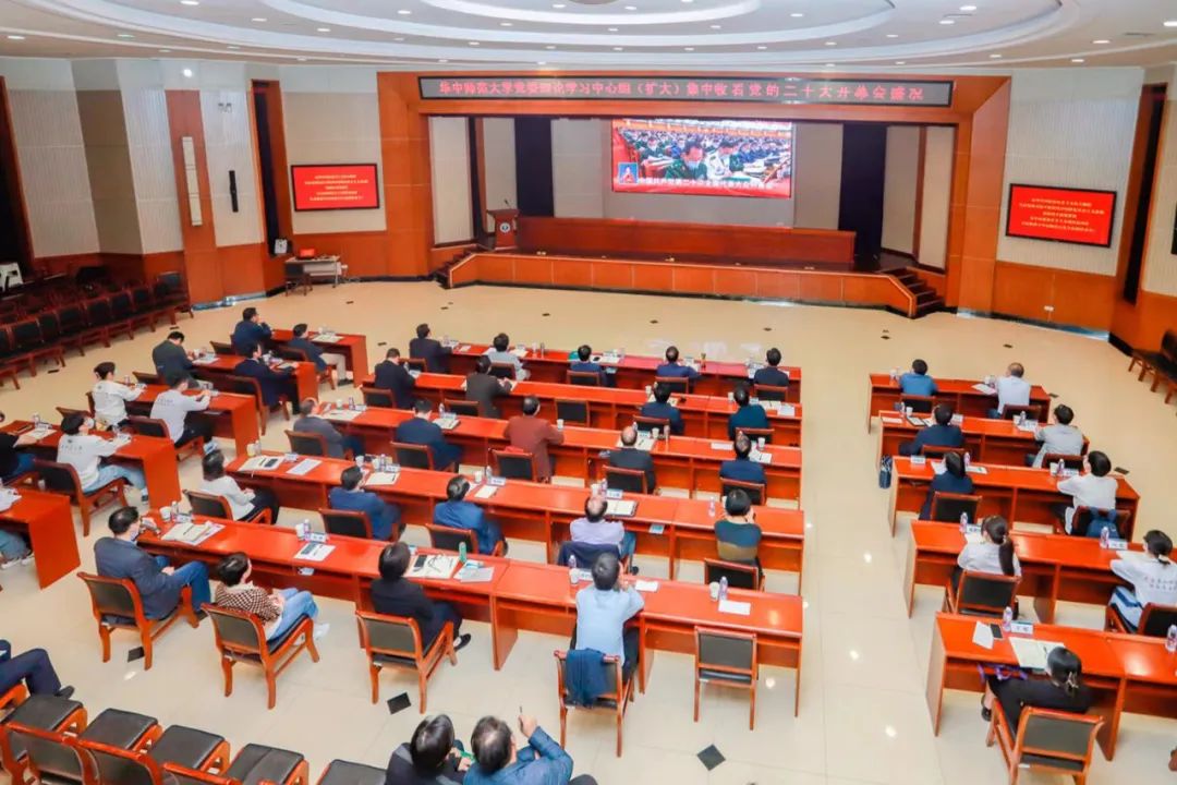 在学校党委统一安排部署下,开云手机网广大党员干部师生以多种形式收听收看了开幕会。上午十时,在科学会堂一楼报告厅主会场,校领导,校党委理论学习中心组(扩大)成员,学校入选湖北省委讲师团、武汉市委讲师团的专家代表,以及来自校学生会、研究生会、社团中心等学生组织的代表集中观看了开幕会,认真聆听了习近平总书记的报告。各单位也设立分会场,组织师生收听收看开幕会盛况。