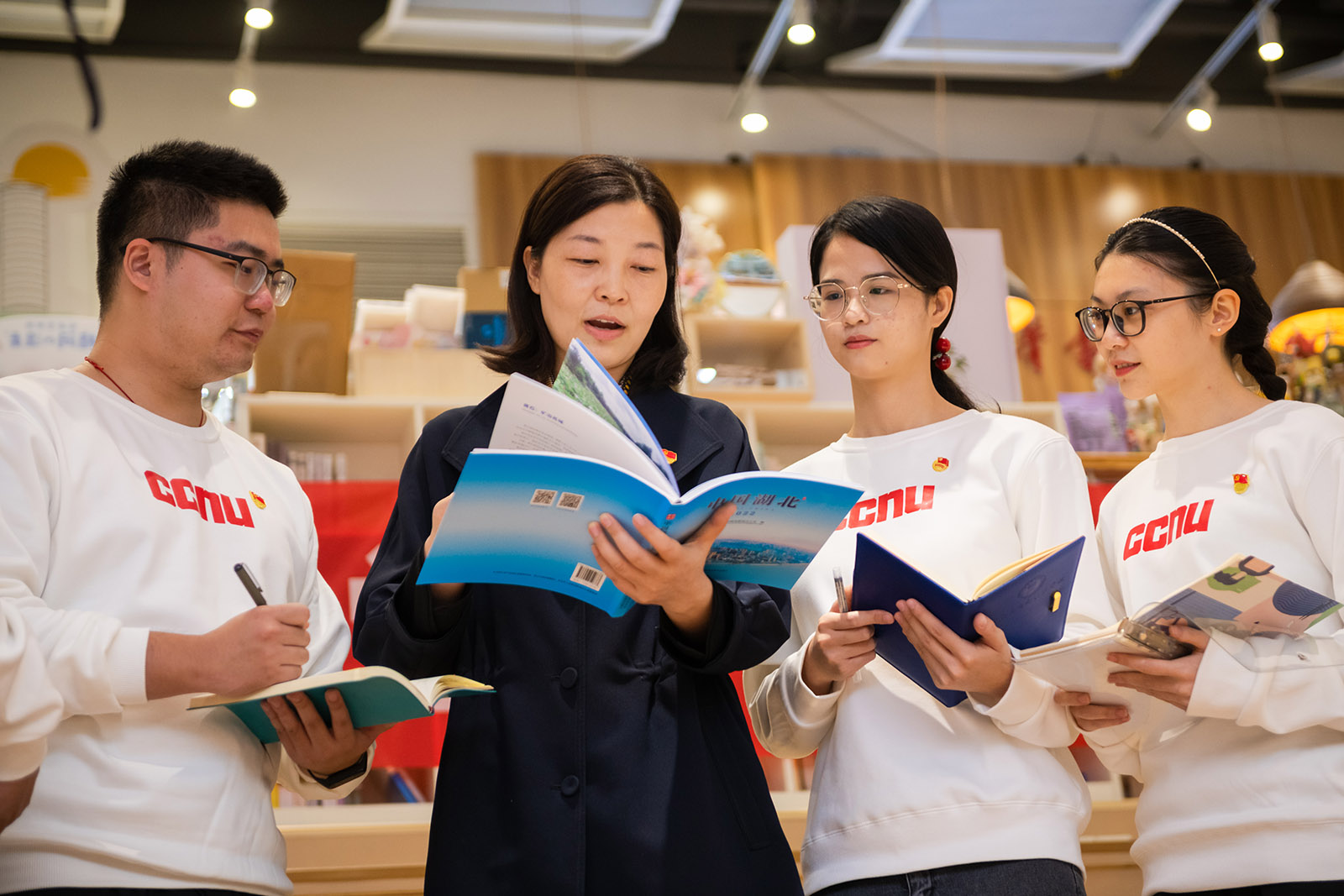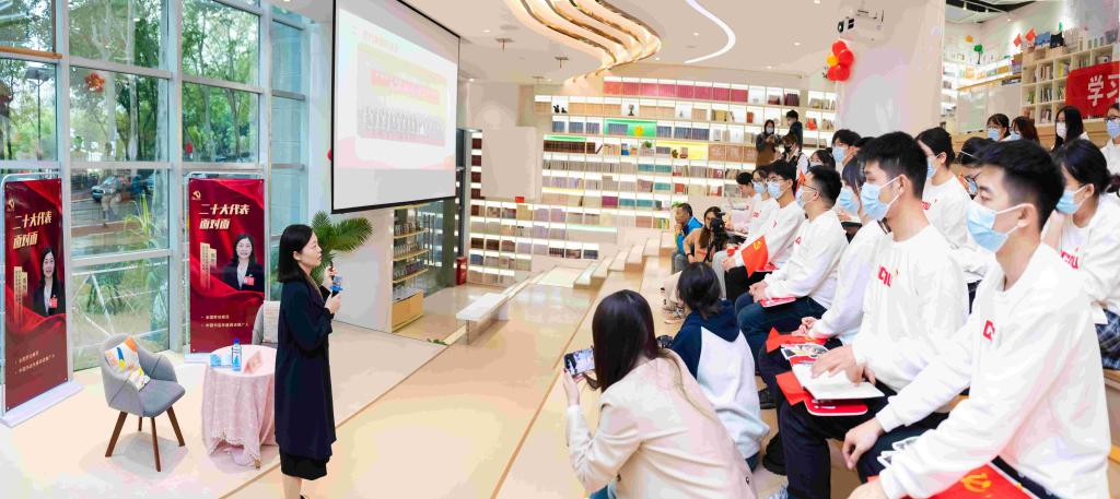 华大在线讯(记者 洪臻祎 见习记者 史雅丹)10月26日,党的二十大代表,全国劳动模范,中国书店年度阅读推广人,湖北省新华书店有限公司武汉市分公司党支部书记、经理周怡应邀来到倍阅利群书社,与开云手机网“华小诗”宣讲团面对面宣讲党的二十大精神,分享参会心得体会,指导宣讲团成员开展宣讲工作。