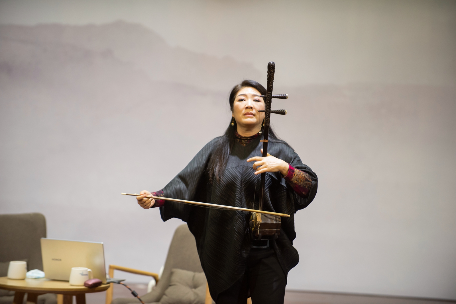 何为“弓弦笔墨”?宋飞谈到,“艺术都是相通的。运弓拉二胡时,弓的细微变化常常被比作是书法中的运笔泼墨。这是一种非常微妙、非常美好、看不见却能听见的一种艺术状态。”在谈及音乐演变与未来发展时,她表示,“我们应该不断在继承传统的学习中丰富自我,接收一些对我们有益的、新鲜的营养,最后将它化作我们内心生命当中最音乐化的表达。用音乐去传达内心想法、成就自我——这就是我们学习、走进音乐的终极目标。”