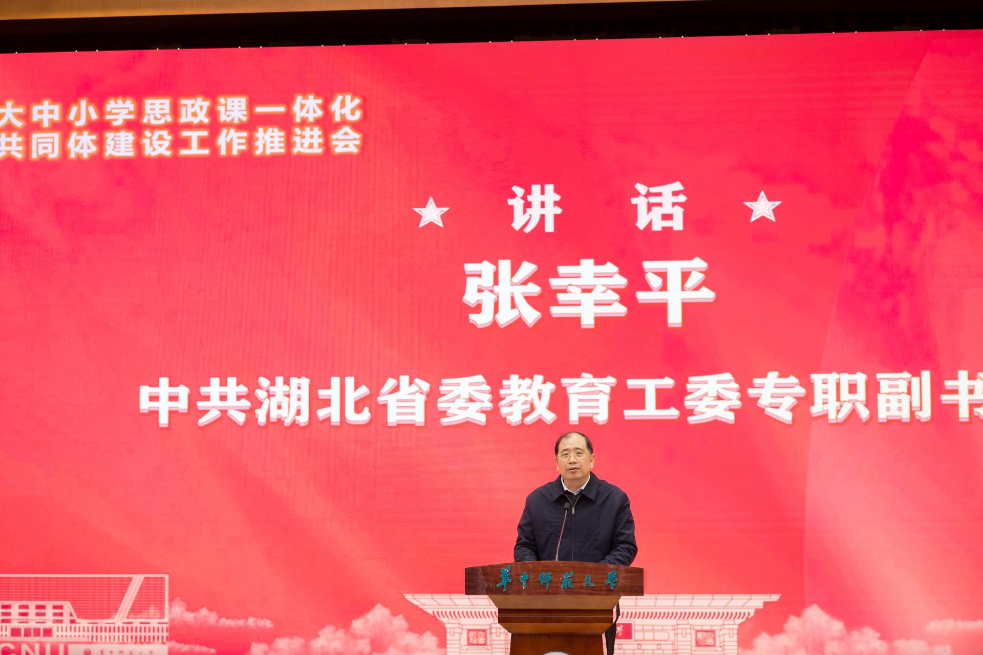 省委教育工委专职副书记张幸平作工作部署。鄂州市委副书记、市长王玺玮,鄂州市委副书记、教育工委书记徐艳国,校党委书记夏立新,副校长彭双阶出席。教育部大中小学思政课一体化共同体(湖北省)建设牵头单位和成员单位负责人,各市、州教育局负责同志和公办本科高校党委负责人参会。省教育厅副厅长邓立红主持会议。