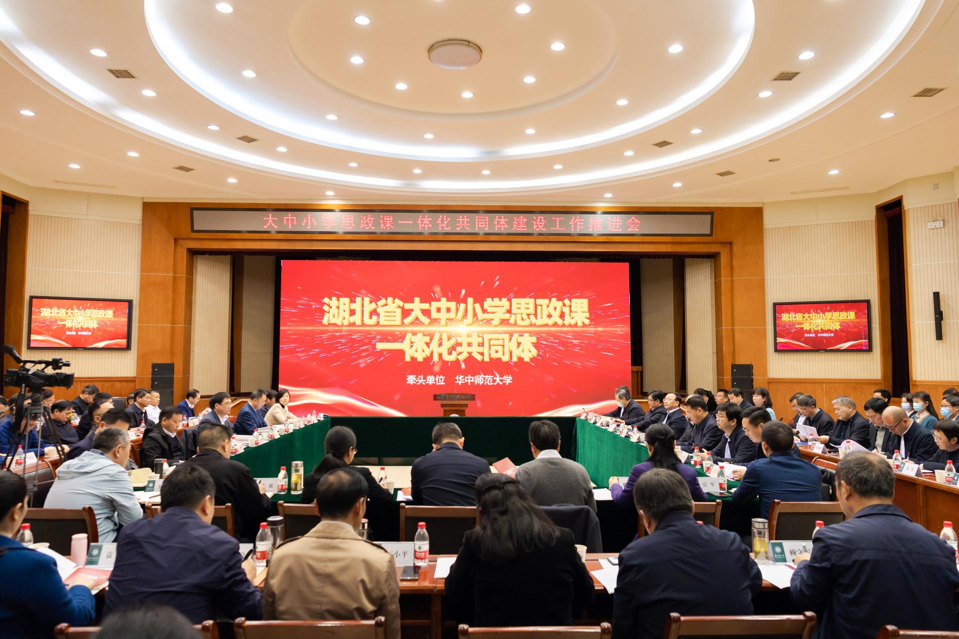 会议指出,大中小学思政课一体化共同体,着力大中小学课程、教材、资源、教学、队伍、机制等一体化建设,瞄准人才培养难题探索体制机制创新,切实发挥思政课在立德树人中的关键作用,提升思政课育人效果。一要提高政治站位,深刻认识大中小学思政课一体化建设的重大意义。推进大中小学思政课一体化建设,是深入贯彻习近平总书记重要讲话和重要指示批示精神的政治要求,是努力培育担当民族复兴大任的时代新人的客观需要,是构建具有湖北特色的教育发展新格局的落实举措。二要突出工作重点,全面推进大中小学思政课一体化共同体建设。把握建设原则,创新思政课一体化建设的实践路径;明确重点内容,构建思政课一体化建设的省域架构,着力从“六个方面下功夫”;聚力建设目标,打造思政课一体化建设的样板工程,力争形成可借鉴、可推广的模式和机制。三要扛起工作责任,确保大中小学思政课一体化共同体建设落实见效。加强组织领导、条件保障、评价督导,确保建设任务落到实处、尽快见效。