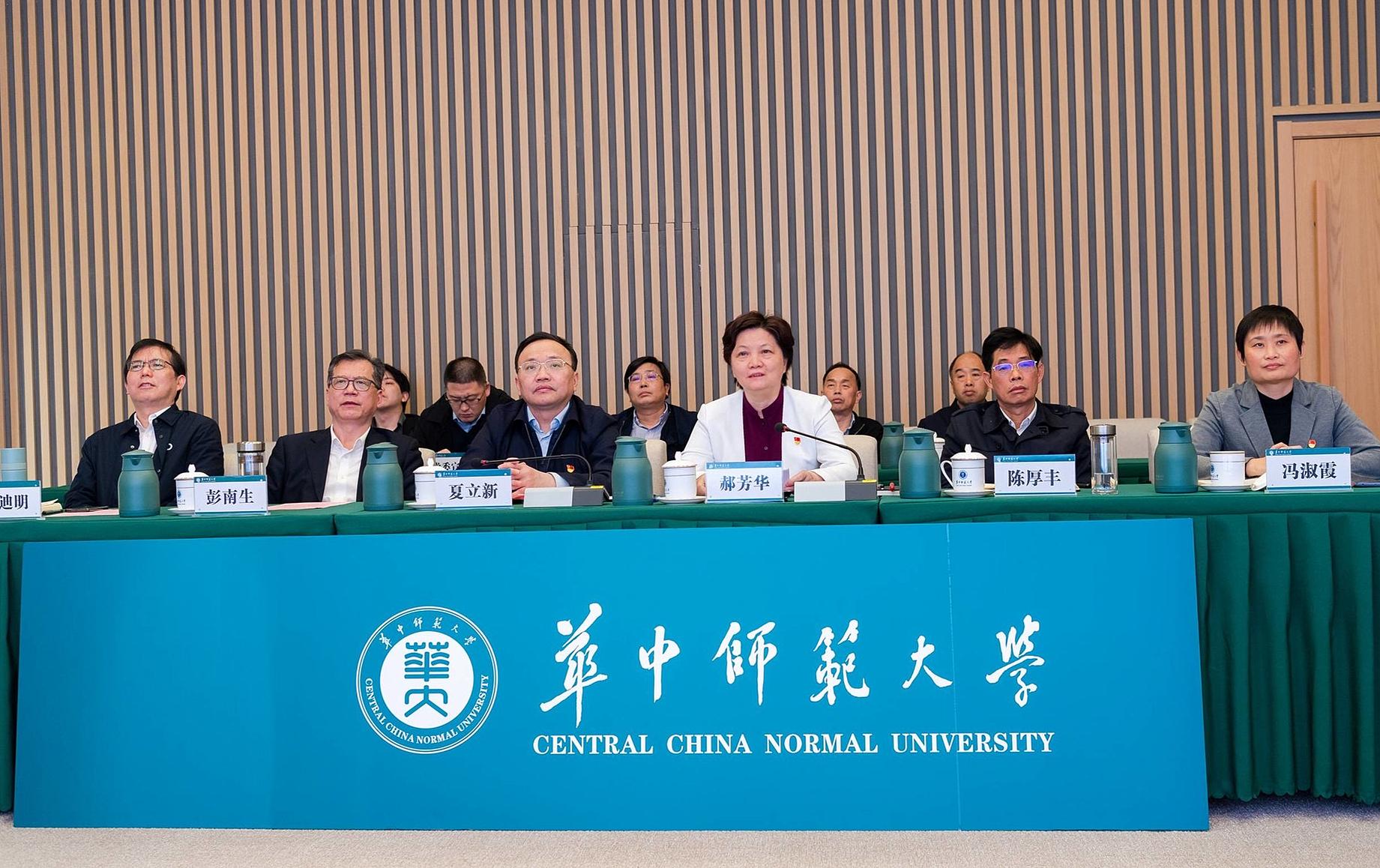 华大在线讯(记者 毛军刚)4月27日,学习贯彻习近平新时代中国特色社会主义思想主题教育师范院校领导班子读书班联学活动以线上线下相结合的方式举行。中央第五十三指导组副组长、教育部人事司二级巡视员张总明同志,中央指导组成员、中组部干部三局五处四级调研员朱贵之同志出席联学活动。校党委书记夏立新,校长郝芳华,副校长彭南生,校党委副书记、纪委书记陈厚丰,校党委副书记陈迪明,校长助理冯淑霞参加联学。活动由北京师范大学校长马骏主持。