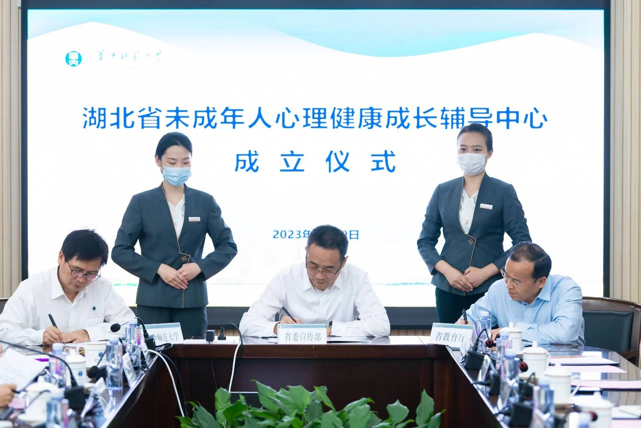 会上,省委宣传部、省教育厅、开云手机网三方签署湖北省未成年人心理健康成长辅导中心合作备忘录,省委宣传部、省教育厅领导为省中心授牌,省卫健委、省妇联领导为首批未成年人心理健康辅导专家代表颁发聘书。
