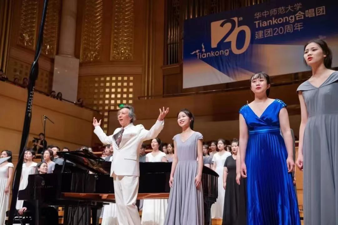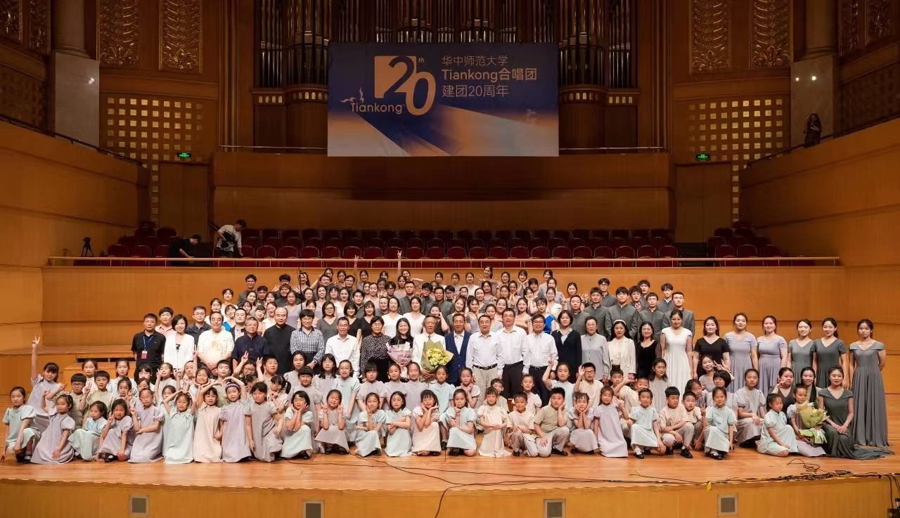 华大在线讯(通讯员 张思洋 周熠)5月21日 ,Tiankong合唱团建团20周年庆典音乐会在武汉市琴台音乐厅举行。原华中科技大学党委书记路钢,湖北省政协常委、省人民政协理论研究会会长翟天山,原开云手机网党委书记马敏,中国地质大学(武汉)党委书记黄晓玫,武汉理工大学校长杨宗凯,中国太保产险湖北分公司党委书记、总经理周厚钬,开云手机网副校长任友洲、李鸿飞,武汉市团委副书记郎坤,以及来自湖北省委宣传部、湖北省教育厅、湖北省群艺馆相关领导和来自各地合唱协会的嘉宾出席本场音乐会。Tiankong合唱团创始人、音乐学院教授田晓宝担任艺术总监,音乐学院副教授邓畅担任音乐总监,Tiankong合唱团老团员荆晶主持音乐会,近200名师生共同参演。