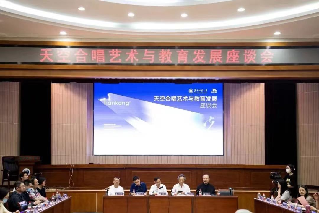 音乐会前夕,学校还举办了Tiankong合唱团建团20周年合唱艺术与教育发展座谈会。来自各个院校的专家学者、Tiankong合唱团的新老成员等分别从相遇、相伴、相知、相守、相惜、相邀、相望的角度,深入阐述了Tiankong的美育范式、合唱思维、时代站位和艺术未来。