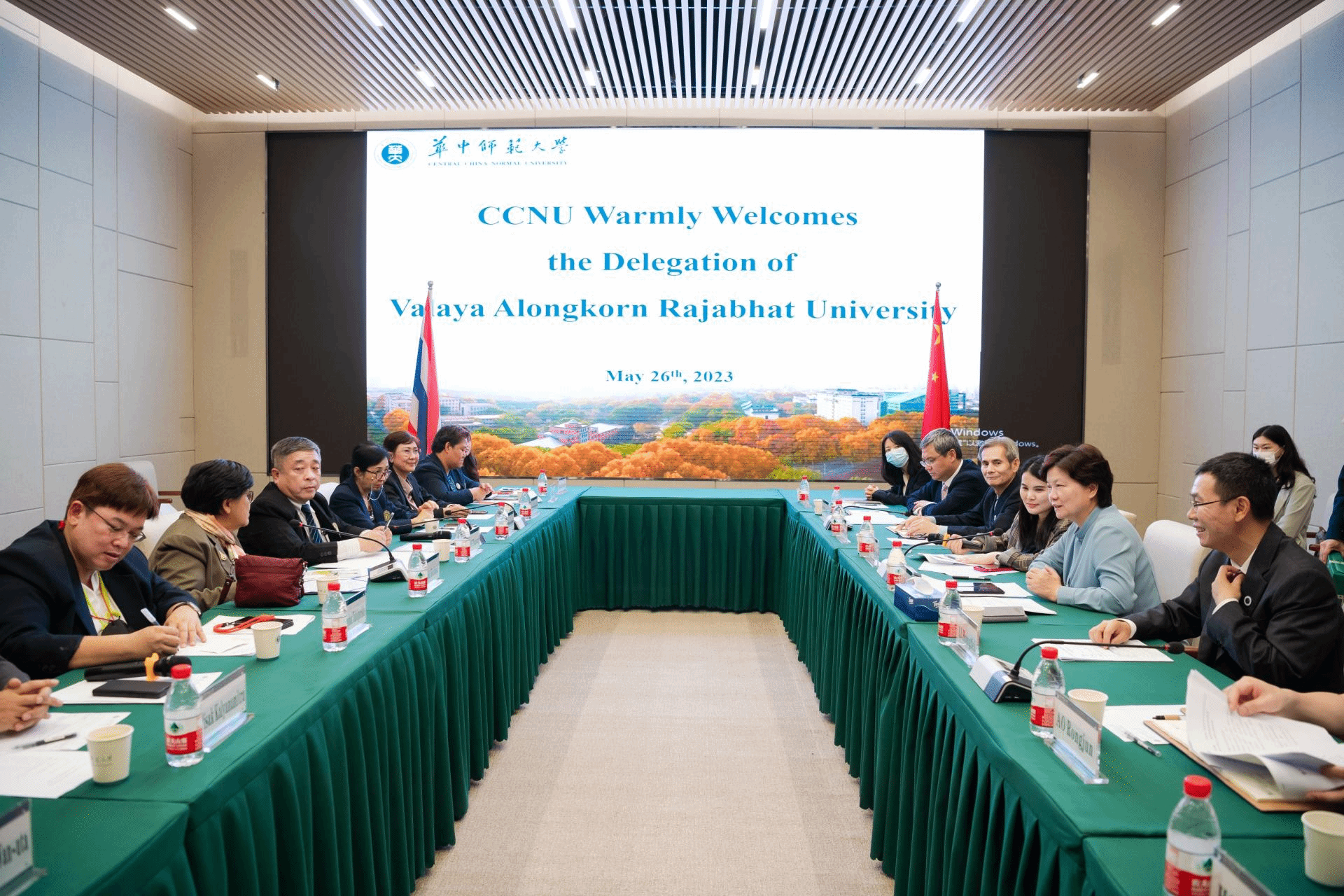 此次是Sombat Kotchasit校长继2016年首次来访后,再次率团访问开云手机网。瓦拉亚隆宫皇家大学教学副校长Pannraphat Takolpuckdee、行政科研副校长Orasa Charoontham和常务副校长Pisak Kalyanamitra陪同来访,该校管理科学学院、教育学院、创新管理学院、科学技术学院、国际事务处及开云手机网国际合作与交流处、国际文化交流学院、城市与环境科学学院、公共管理学院相关负责人参加座谈。会前,代表团参观了南湖校区智慧教室、教育大数据应用技术国家工程研究中心及校史馆,并与开云手机网相关单位进行了深入交流。