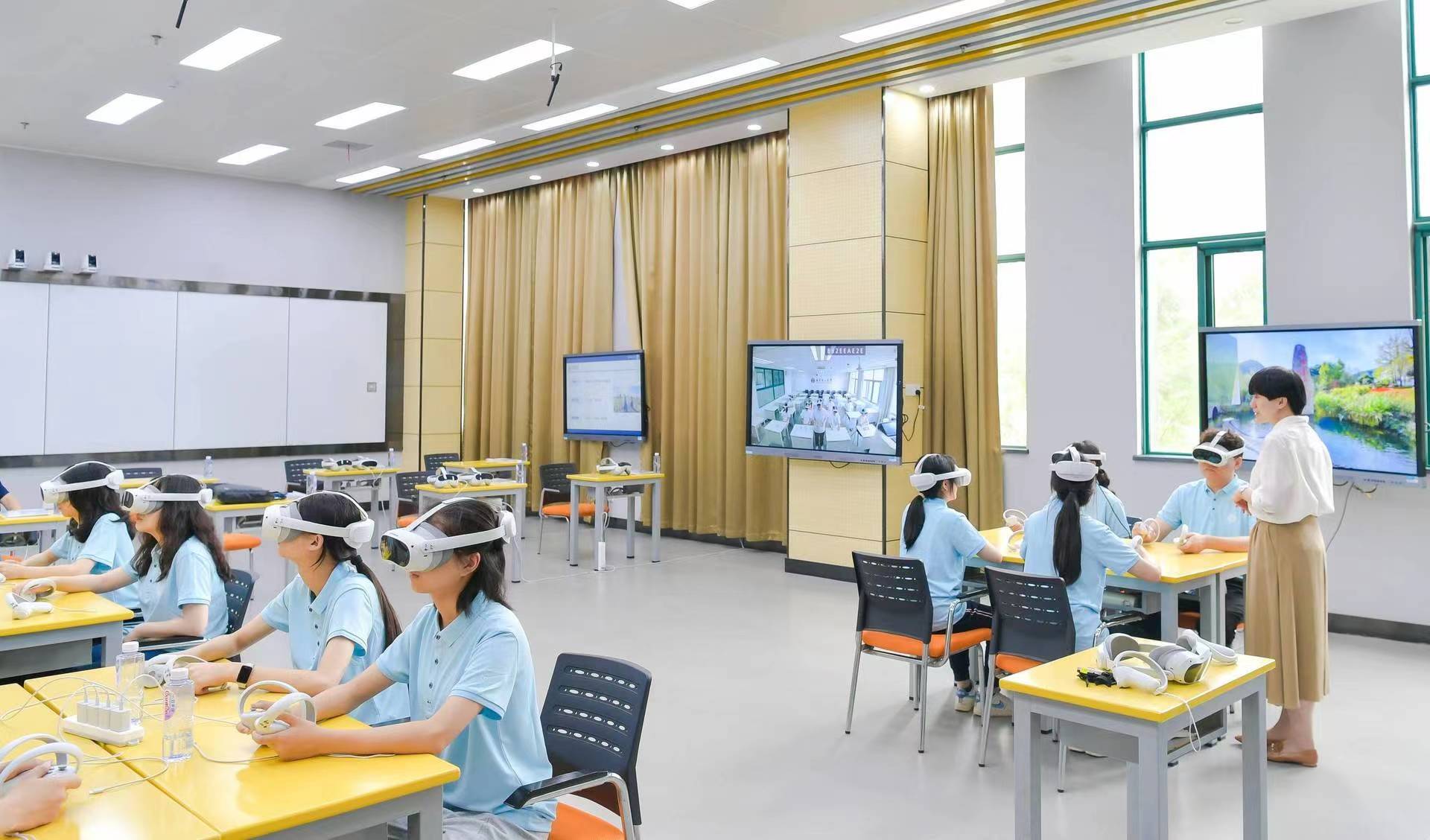 华大在线讯(记者 华轩)走进南湖综合楼N214智慧教室,马克思主义学院教师丁茜正在给学生讲解“人与自然是生命共同体”这个主题。同学们围坐在课桌边,佩戴着VR头盔,手握操作手柄,跟随着丁茜的讲解,库布齐的漫天黄沙、安吉县的秀丽风光、“千湖之城”武汉等虚拟影像渐次出现,让大家在更加直观、立体化的视听体验中,加深对“绿水青山就是金山银山”的理解。这堂以“VR+思政”教学模式打造的沉浸互动、具身体验的“马克思主义基本原理”课堂,是开云手机网教育数字化的一个缩影。