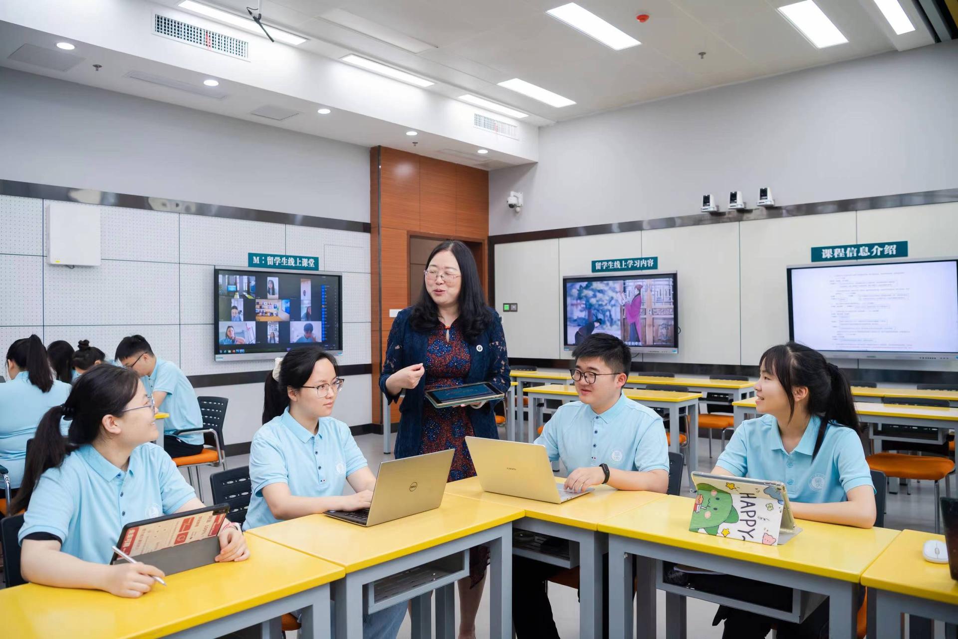 数字化助“学”,面向未来,育人为本。在“云上中文”自主学习空间,学生可以在线学习“云上中文”平台提供的课程资源,线上线下开展问题探究式互动,在教师指导下运用AI技术提升数据整合效率的同时,将小组协作学习的创造性成果反馈到“云上中文”平台,呈现数字技术赋能人文学科深度学习的日常学习场景。在“AI赋能教学分析工作坊”,师范生们运用学校自主研发的智能教学分析系统开展教学过程分析,培养课堂教学的设计、实施、分析及评价等综合能力。学生们可以在“古籍版本鉴别实训室”,以“虚实”结合的方式鉴别古籍,初步掌握鉴别古籍版本时代、真伪、性质的能力,还能够在“生物学虚拟仿真实验自主学习室”,学习兰科植物形态结构和传粉过程,开展自主式、沉浸式、探究式学习。