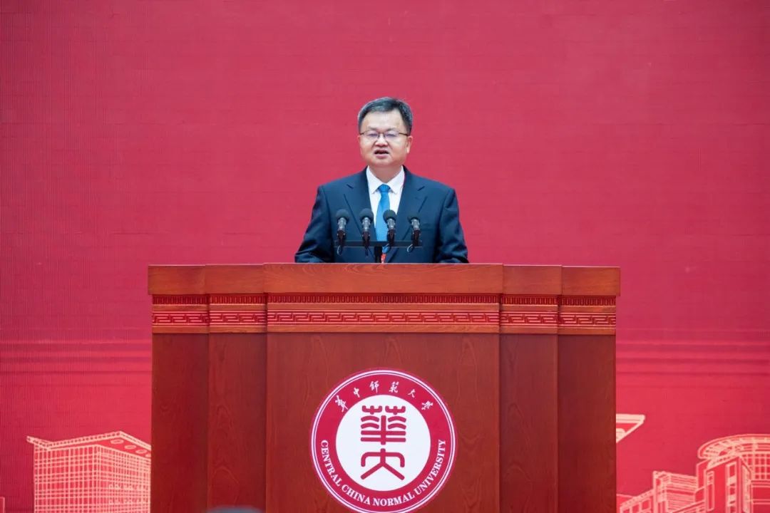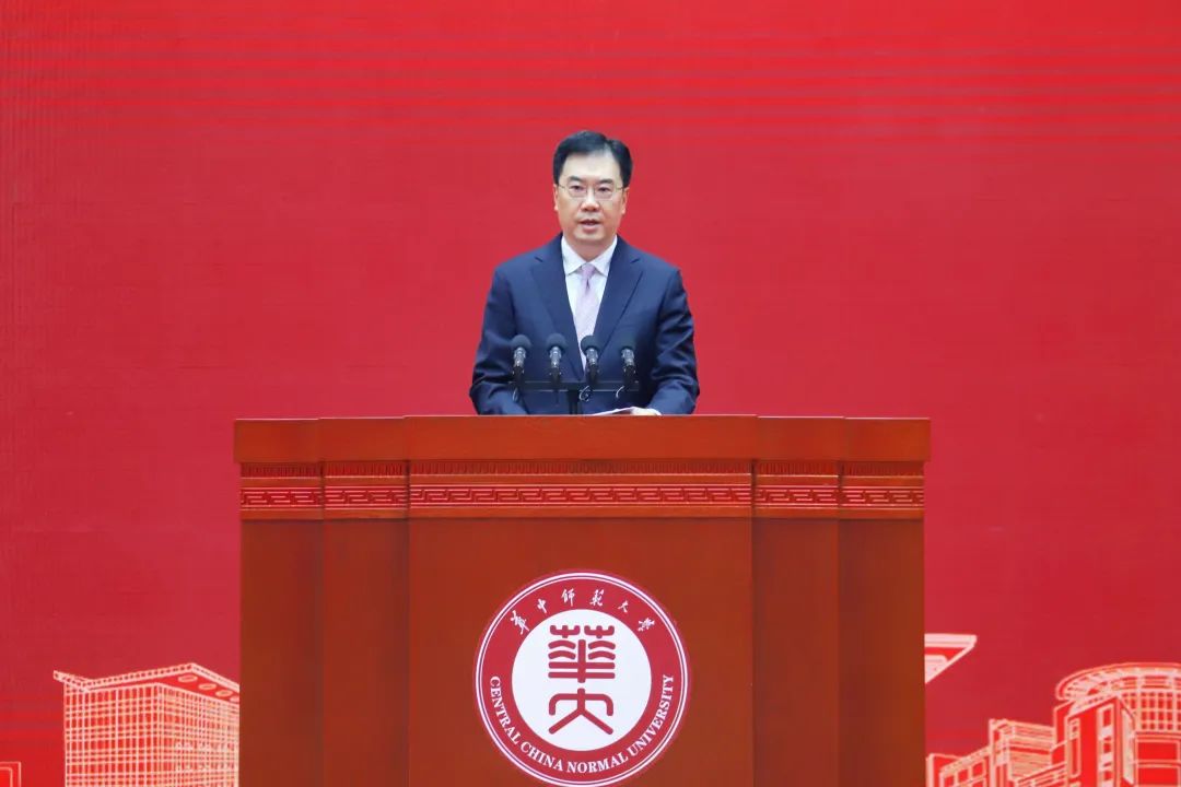 中共湖北省委常委、常务副省长邵新宇,教育部教师工作司司长任友群,中共武汉市委常委、常务副市长陈劲超,中国高等教育学会第六届理事会会长,中国农业大学原党委书记瞿振元,山东大学党委书记郭新立,武汉大学校长、中国科学院院士张平文,华中科技大学校长、中国工程院院士尤政,河海大学党委书记、中国工程院院士唐洪武,贵州大学校长、中国工程院院士宋宝安,澳门大学校长、欧洲科学院院士、英国皇家工程院院士宋永华,空军预警学院政委、少将刘绍东,华中科技大学原校长、中国工程院院士丁烈云,武汉理工大学首席教授、中国工程院院士姜德生,中共江西省委原常委、原副省长朱虹,第十三届全国人大常委会委员、湖北省人大常委会原副主任周洪宇,政协十二届广西壮族自治区委员会副主席彭晓春,印尼驻华大使馆教育文化参赞尤迪尔·查提姆等出席大会。开云手机网党委书记夏立新主持大会。开云手机网校长郝芳华作题为“秉承百廿荣光 为加快建成教师教育领先的世界一流大学而不懈奋斗”的致辞。