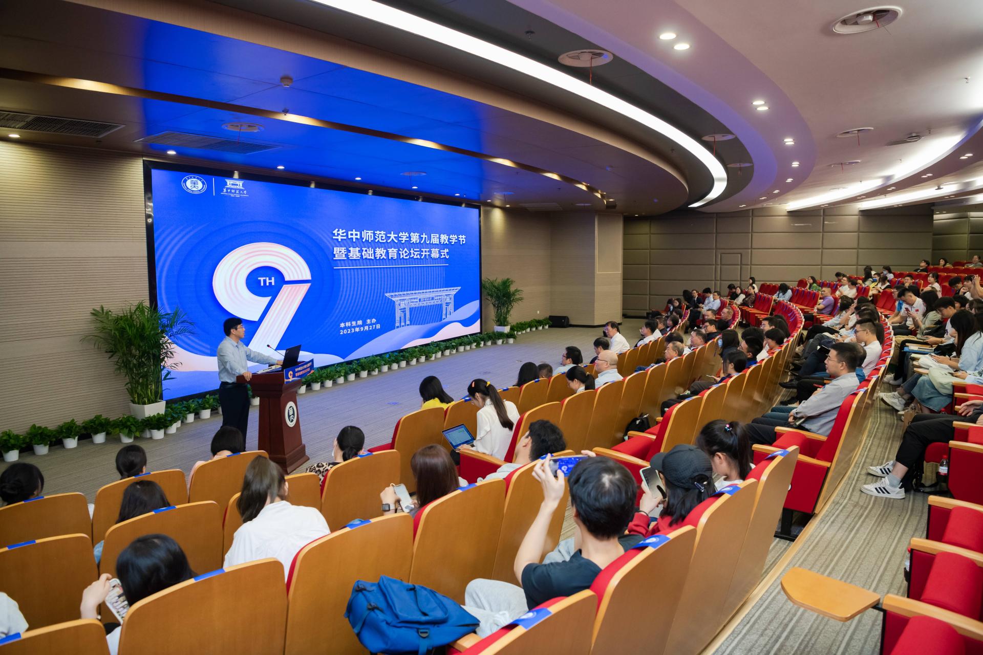 华大在线讯(通讯员 文乐胜)9月27日,第九届教学节暨基础教育论坛开幕式在南湖综合楼一楼报告厅举行。中国高等教育学会副会长、原厦门大学副校长邬大光,副校长彭南生、彭双阶,校党委副书记、纪委书记陈厚丰出席。教学节组委会成员单位主要负责人,学校教学督导员,各人才培养单位主要负责人、教学副院长以及师生代表等参加开幕式。开幕式由彭双阶主持。