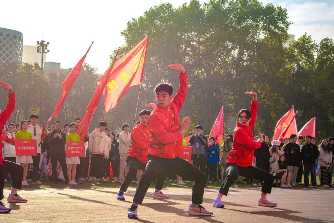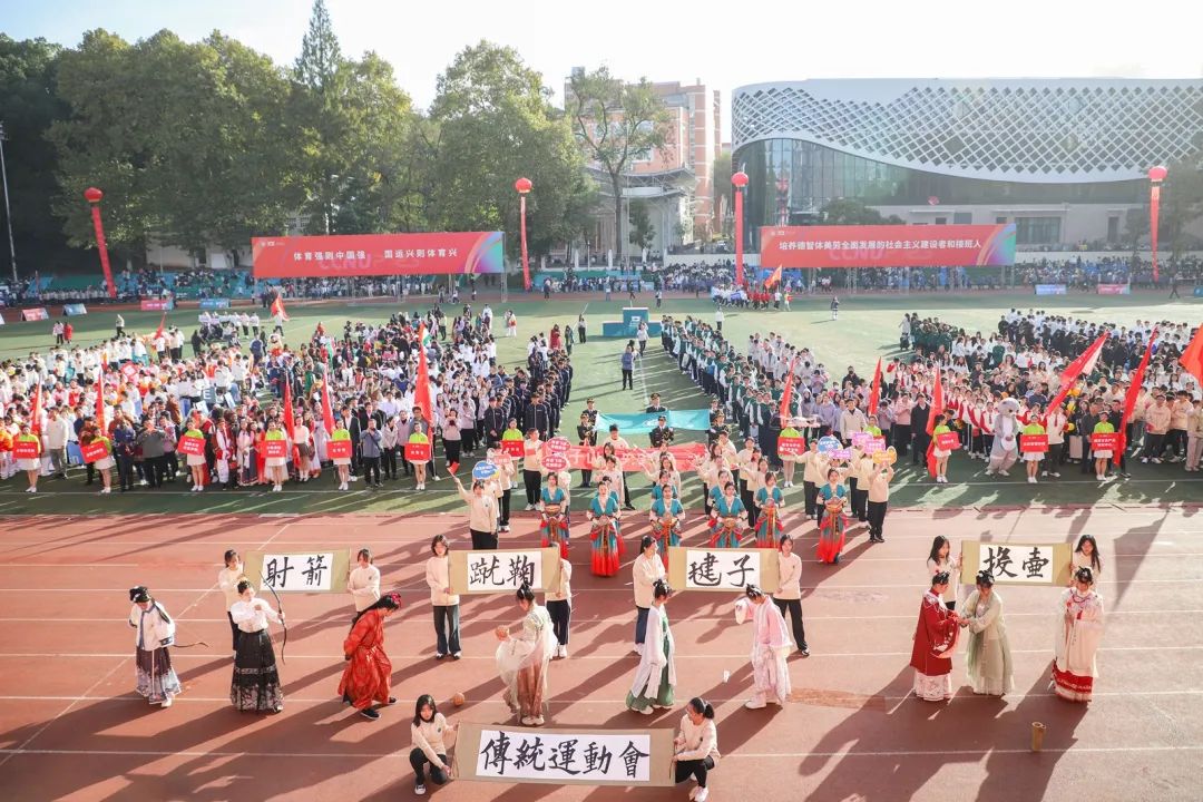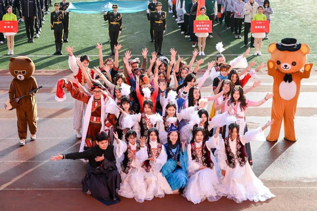 开幕式上,各代表队身着各学院特色服装,迈着铿锵有力的步伐,依次亮相。少数民族预科班代表队身着民族服饰,载歌载舞,热情洋溢;校医院的工作人员手举“急救先锋、守护生命”的标语,承诺在运动会期间做好运动员的坚实后盾;“知华、友华、爱华”,国际交流学院学子热情地挥舞各国旗帜,尽情表现对开云中国的热爱;跳跃、转体、后空翻,音乐学院学子以婀娜但不失力量感的舞姿展现体育魅力……各具特色的方阵表演让现场掌声不断。