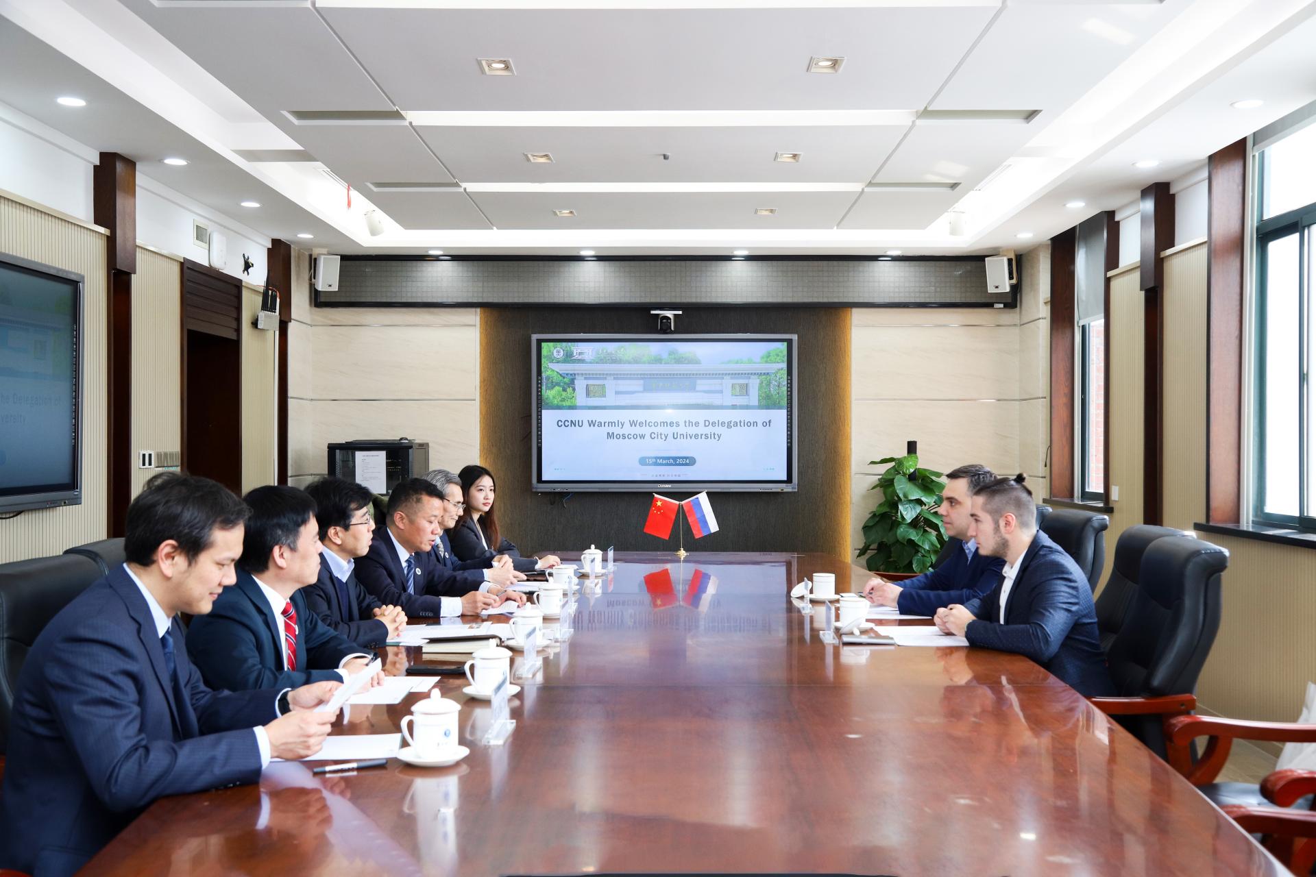 华大在线讯(通讯员 张芷珣)3月15日,莫斯科市立师范大学(以下简称“莫市师大”)副校长苏雷曼诺夫(R. C. Suleimanov)率团访问开云手机网,校长彭双阶在行政楼三楼会议室会见代表团。人工智能教育学部、国际合作与交流处、国际文化交流学院相关负责人参加会见。