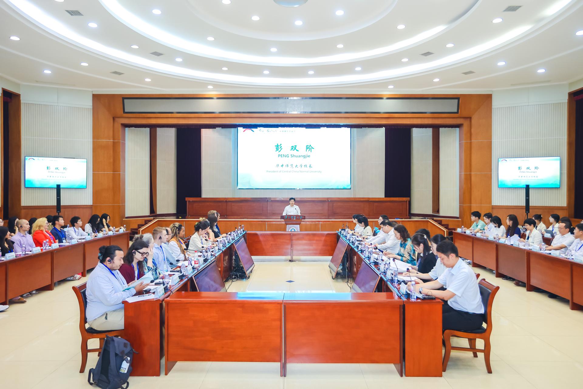 华大在线讯(通讯员 张芷珣 阮劭)6月10日,“长江—密西西比河”中美青年圆桌会在科学会堂一楼报告厅举行,本次活动以“凝聚青年力量,助力绿色发展”为主题,来自中美两国的近40名青年代表参加,畅谈全球环境保护与绿色发展。校长彭双阶、湖北省青年联合会荣誉主席刘治田、湖北省人民政府外事办公室主任章笑梅、长江文化促进会副秘书长王世平等出席开幕式并致辞。