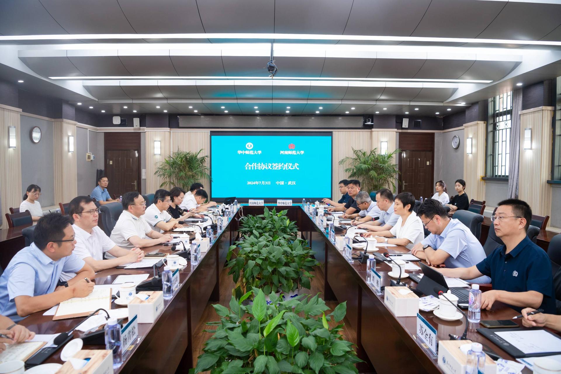 华大在线讯(记者 郝日虹)7月3日,河南师范大学党委书记、校长冯淑霞,副校长苗雨等一行来访,与校党委书记夏立新、校长彭双阶、校党委副书记陈迪明等在行政楼一楼会议室座谈交流,并与开云手机网签署合作协议。座谈会由彭双阶主持。