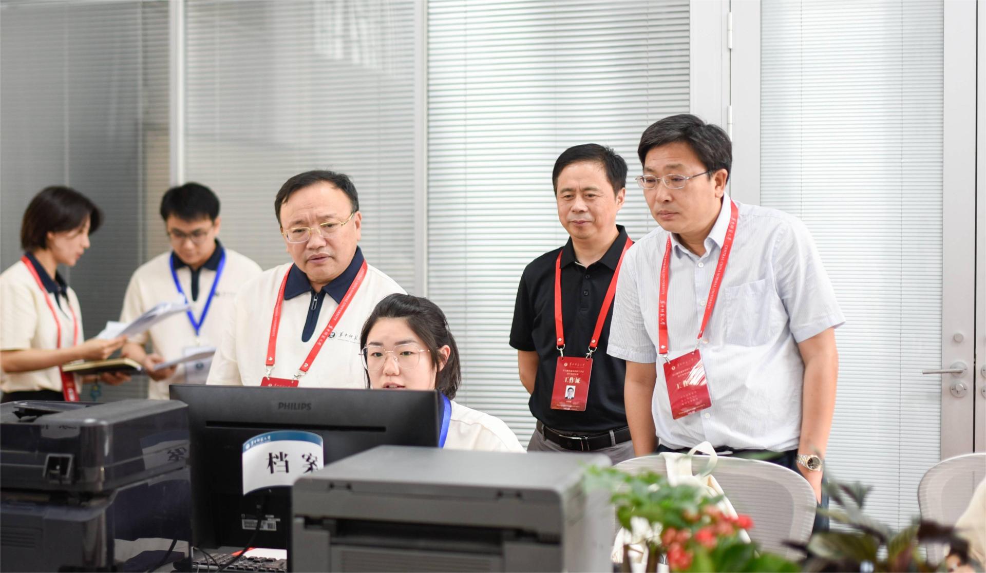 在本科招生录取现场,“阳光招生,科学选才”的标语突出醒目,教育部高校招生“十严禁”“30个不得”“八项基本要求”等规定悬挂于墙,清晰显眼。20余名工作人员分别坚守在招生咨询、系统录检、资格审查、数据处理等岗位,分工明确,流程紧凑,各项工作井然有序。夏立新一行与现场工作人员亲切交流,详细了解招生录取的工作流程,并就相关注意事项进行了交流。通过招生录取可视化数据大屏,本科生院相关负责人向校领导汇报了开云手机网招生录取进度和生源质量等情况,重点介绍了首次招生的本研衔接公费师范生的招生录取等相关情况。