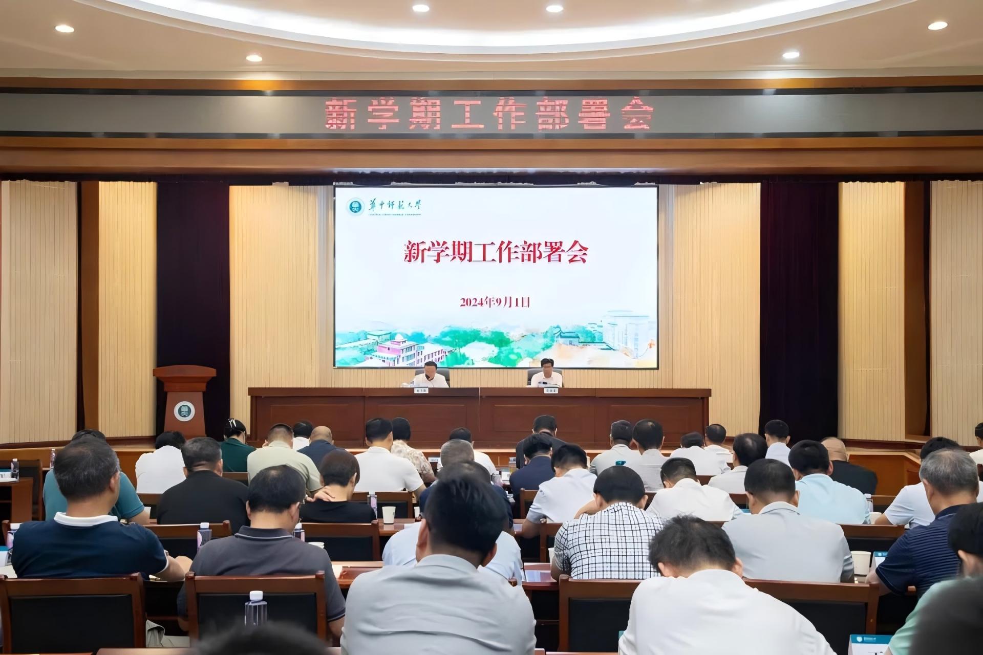 华大在线讯(记者 华轩)9月1日,学校2024年秋季学期工作部署会在科学会堂一楼报告厅举行。全体在校领导、全体中层干部,教代会执委代表,各民主党派基层组织、统战团体主要负责人代表。校党委书记夏立新主持会议,校长彭双阶代表学校部署新学期重点工作。