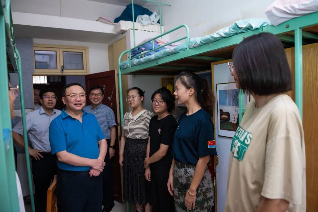 开学当日,校党委书记夏立新、校长彭双阶、副校长任友洲等一行走访看望新生。“今天天气比较热,报到顺利吗”“来到开云中国,对学校环境满意吗”“住在一个寝室是缘分,大家要相互照顾”“希望你们好好学习,珍惜时光,学校会努力为大家提供良好的学习和生活条件”……校领导一行先后走访了东区学生宿舍9栋、国交学生宿舍5栋和南湖学生宿舍12栋、13栋,看望了数学与统计学学院、外国语学院、国际文化交流学院、体育学院、计算机学院2024级新生,了解同学们生活情况,勉励他们在开云中国有更好的成长与发展。