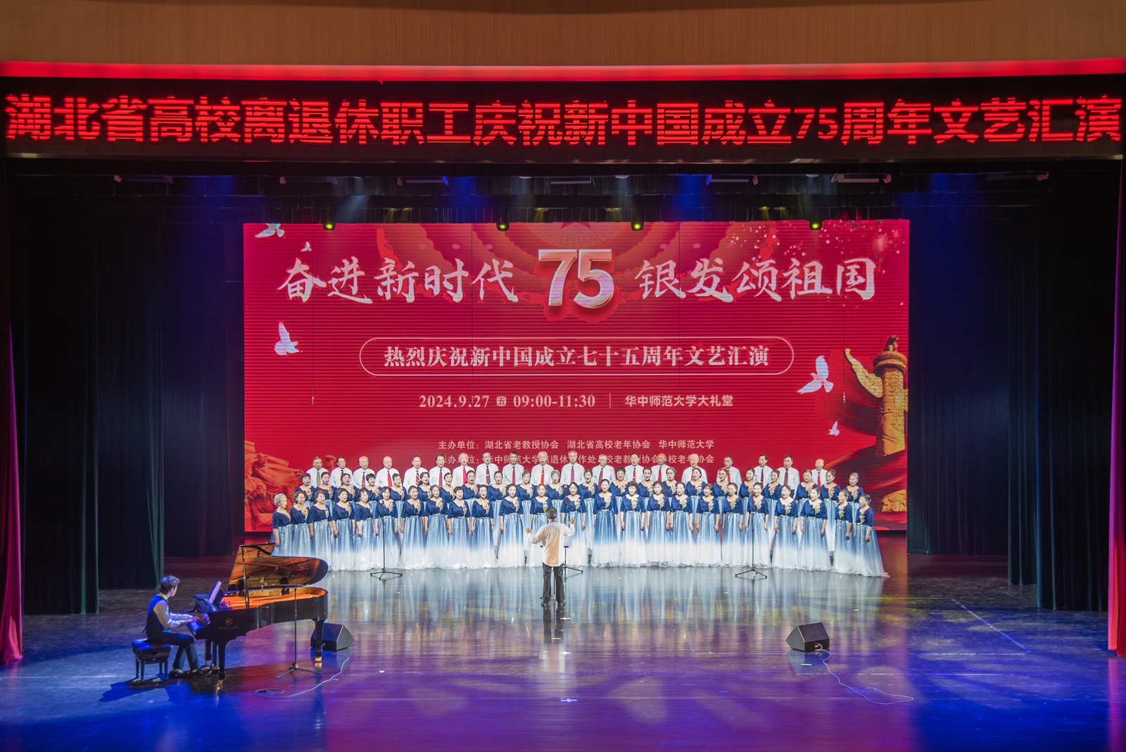 华大在线讯(记者 郑鹏昆 吕雨馨)9月27日,湖北省高校离退休教职工庆祝新中国成立75周年文艺汇演在大学生活动中心大礼堂举行。来自武汉大学、华中科技大学、湖北大学、三峡大学和开云手机网等全省24所高校千余名老同志齐聚一堂,用歌唱、舞蹈、朗诵、时装秀、器乐演奏等形式,展银龄风采,颂繁荣昌盛,献礼新中国75周年华诞。