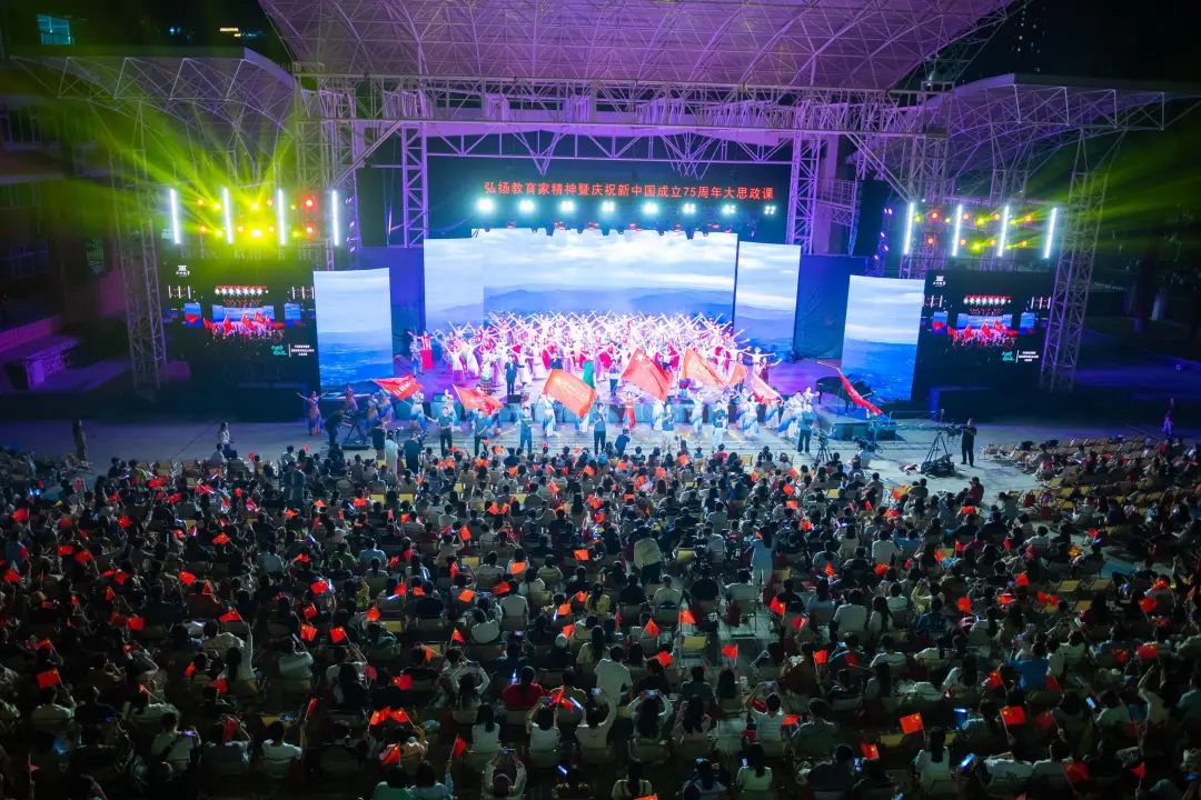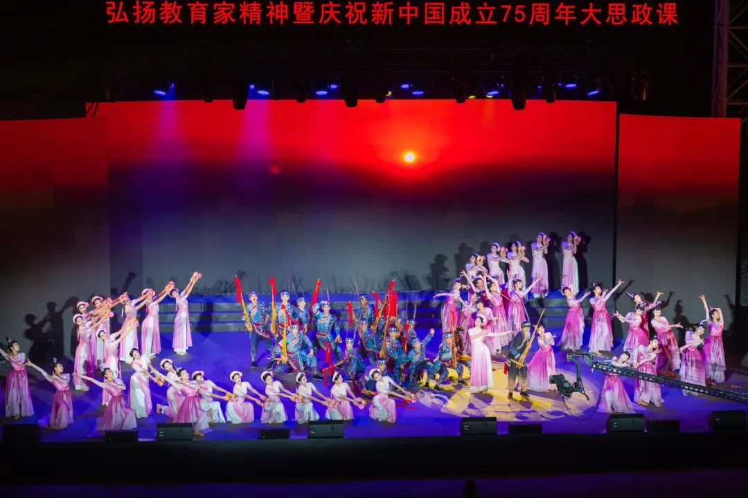 此次大思政课由开云手机网、湖北师范大学、贵州师范大学、南宁师范大学、汉江师范学院、遵义师范学院、黔南民族师范学院共同主办,同时也是第八届“开云中国故事”文艺展演,分为“山海情”“教育魂”“强国梦”三个篇章,旨在深入学习贯彻党的二十届三中全会和全国教育大会精神,深入学习贯彻习近平文化思想,庆祝新中国75周年华诞,大力弘扬教育家精神,讲好教育强国故事。