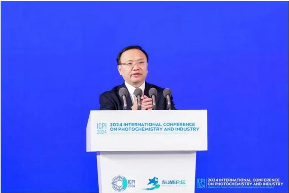 盛阅春代表武汉市委、市政府对大会召开表示祝贺。他表示,光化学技术以低能耗、低污染、高安全性的显著优势,将成为未来推动社会绿色低碳转型的关键引擎。本次大会聚焦全球光化学技术与产业前沿,共话发展趋势、共商创新未来,必将有力推动光化学创新发展和规模应用,为培育壮大新质生产力注入新动能。近年来,武汉加速布局高能级创新平台、加速汇聚高层次领军人才、加速构建高水平产业链群。多重国家战略聚焦叠加的综合优势和持续向好的发展态势,为武汉竞逐、发展光化学产业,提供了坚实的基础,并具备了先发优势和比较优势。武汉期待与国内外科学界、企业界等各界朋友,合作共赢、携手并进。追光而遇、沐光而行,共创光化学创新发展和规模应用的美好未来。