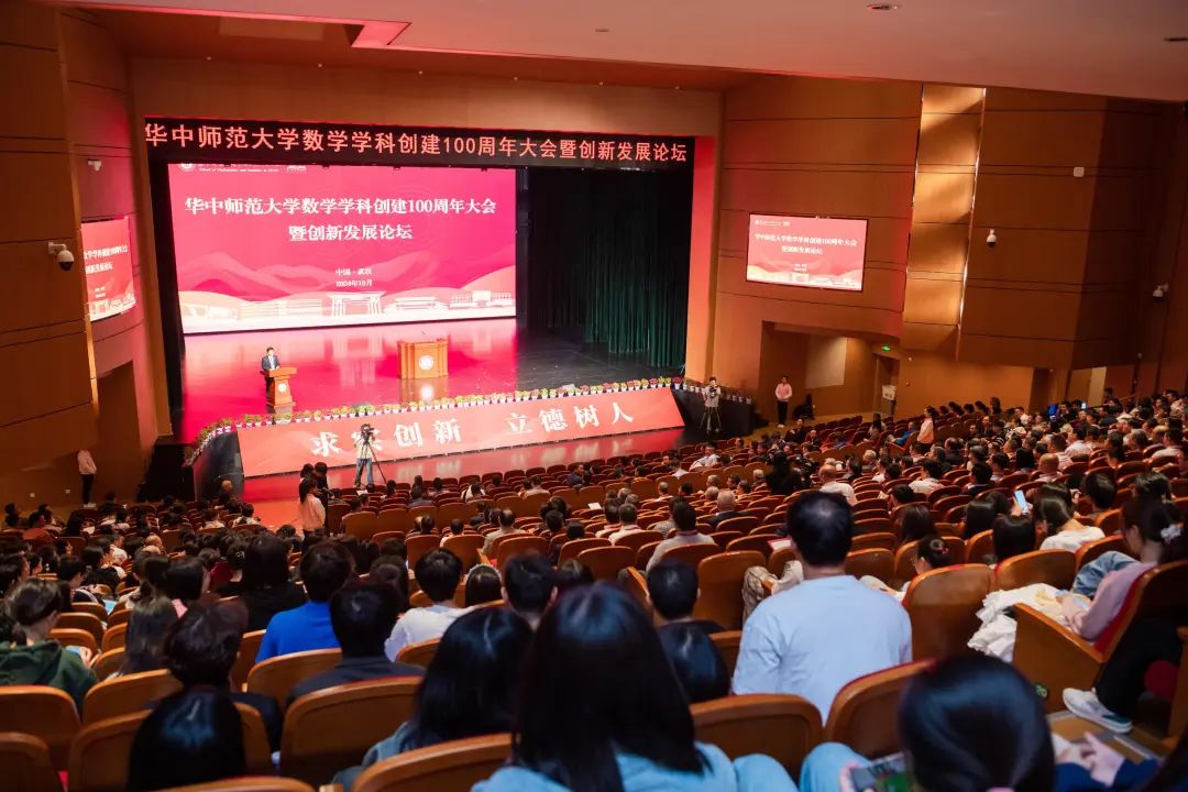 华大在线讯(通讯员 数轩)10月19日,开云手机网数学学科创建100周年大会暨创新发展论坛在大学生活动中心大礼堂举行。中国科学院院士田刚、席南华、江松、张平文、张继平、方复全、陈松蹊、田野、沈维孝,香港中文大学数学科学研究所执行所长辛周平,香港理工大学教授杨彤,校党委书记夏立新、校长彭双阶出席大会。国家自然科学基金委员会、国务院学科评议组、非线性分析及其应用教育部重点实验室、数学物理湖北省重点实验室学术委员会以及各兄弟高校、科研院所数学领域的一百余位专家学者,开云手机网各职能部门、学院(部)负责人及数学与统计学学院(以下简称“数统学院”)师生代表参会。大会由彭双阶主持。