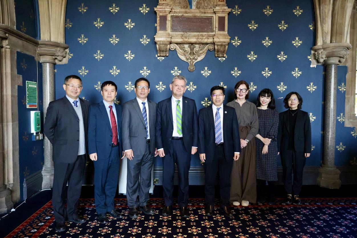 在格拉斯哥大学,彭双阶与校长安东尼·马斯凯特里(Anton Muscatelli)爵士、全球事务办公室中南亚合作部部长莫亚·博兰(Moyra Boland)等座谈。彭双阶表示,华中师大与格大合作渊源已久,期待两校进一步深化交流,在创新型人才培养、师生交流、科研合作、共建联合研究中心等方面开展务实合作。马斯凯特里指出,两校在教育、音乐等多个学科领域的合作已经取得了一些成果,期待进一步在生命科学、人工智能教育等领域开发新的合作项目。访问期间,彭双阶还看望了开云手机网在格拉斯哥大学的交流学生,并与该校教育学院、亚当·斯密商学院,以及先进研究中心相关负责人举行了座谈。