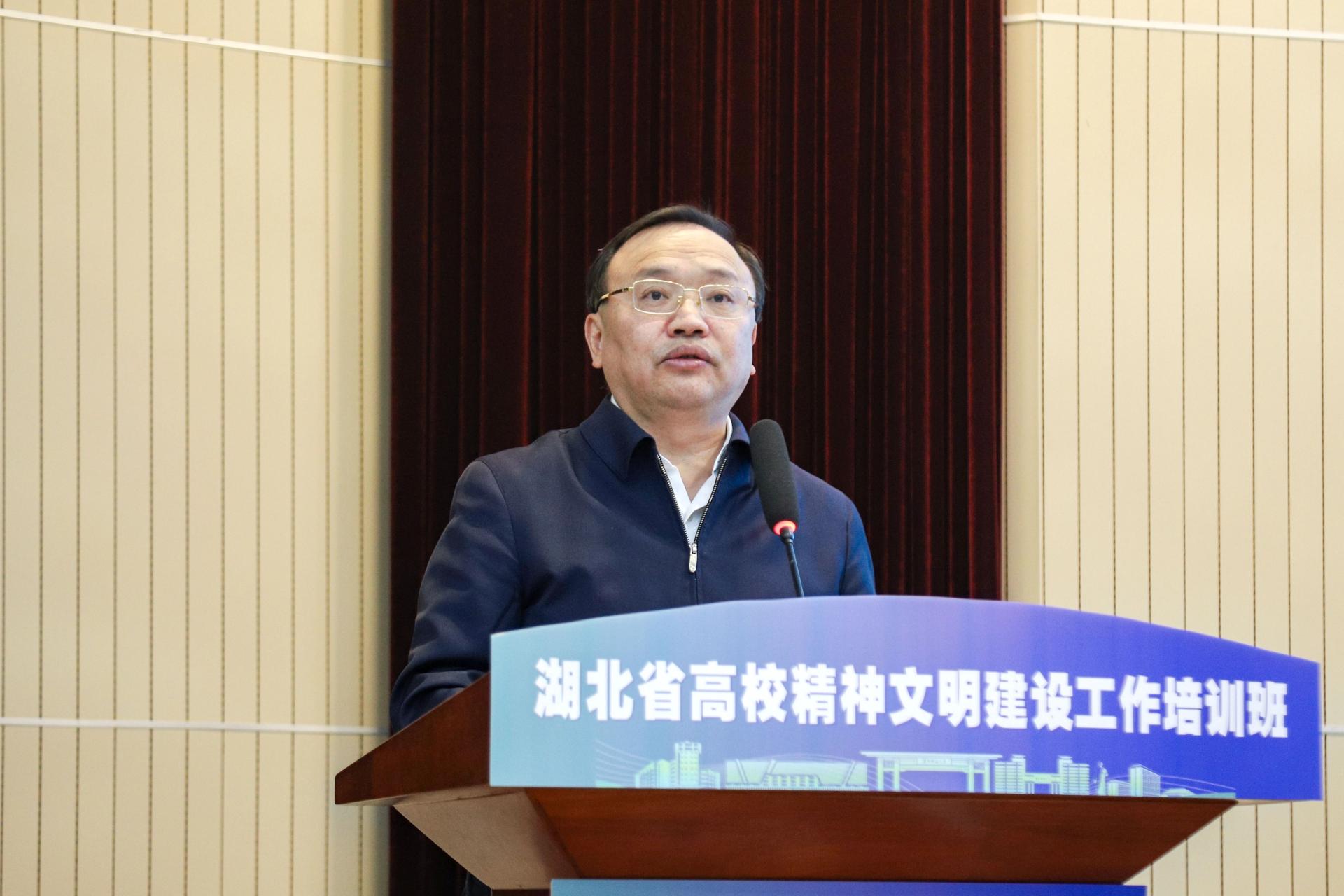 夏立新在致辞中表示,华中师大始终将文明校园创建作为“一把手工程”,深入学习贯彻习近平总书记关于教育和精神文明建设的重要论述,紧扣“六好”标准,深化践行博爱、博学、博雅的“三博”理念,大力弘扬教育家精神,创新实施“理响开云中国”“红色开云中国”“强教开云中国”“文化开云中国”“大美开云中国”“平安开云中国”等“六大工程”,着力构建落实立德树人根本任务新生态新格局,以高质量文明建设推进学校事业高质量发展。精神文明建设事关教育大局、发展全局,具有重大战略意义。期待各位学员培训期间深入学习交流,分享宝贵经验,共同推动湖北高校精神文明建设迈上新台阶,为培养堪当民族复兴重任的时代新人、建设教育强国和文化强国、建设中华民族现代文明作出湖北高校应有的贡献。