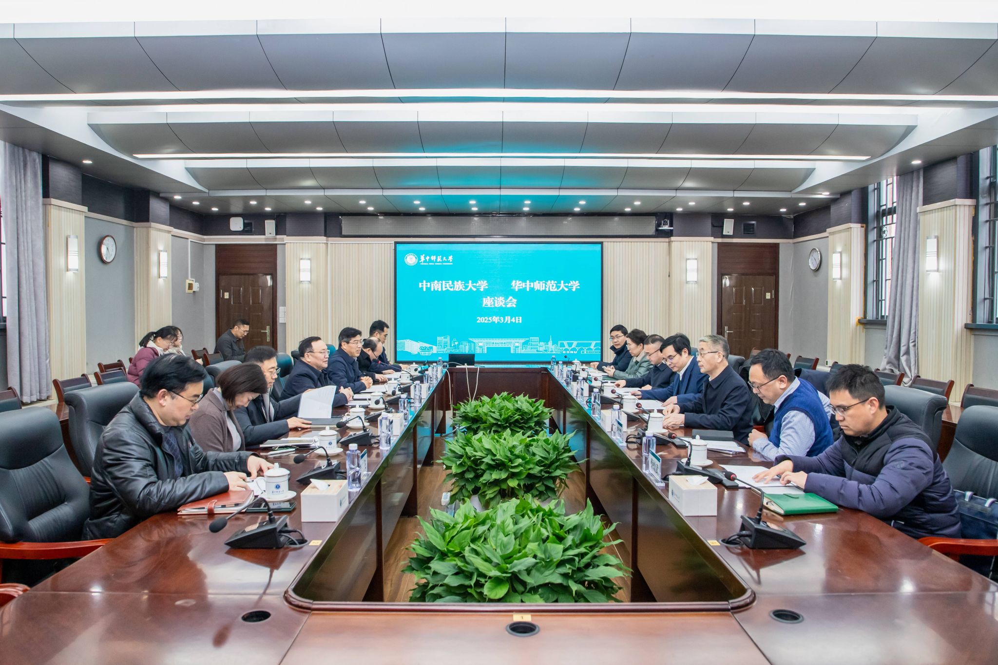 华大在线讯(记者 郝日虹 见习记者 王颖)3月3日,中南民族大学党委书记徐业勤、校长刘义等一行来访,与校党委书记夏立新、校长彭双阶在行政楼一楼会议室进行座谈交流。座谈会由彭双阶主持。