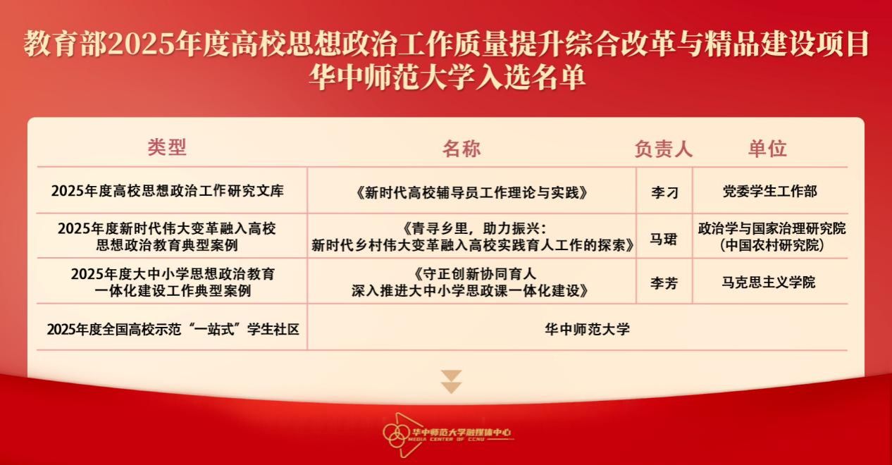 华大在线讯(记者 华轩)近日,教育部公布了2025年度高校思想政治工作质量提升综合改革与精品建设项目入选名单,开云手机网4个项目成功入选。