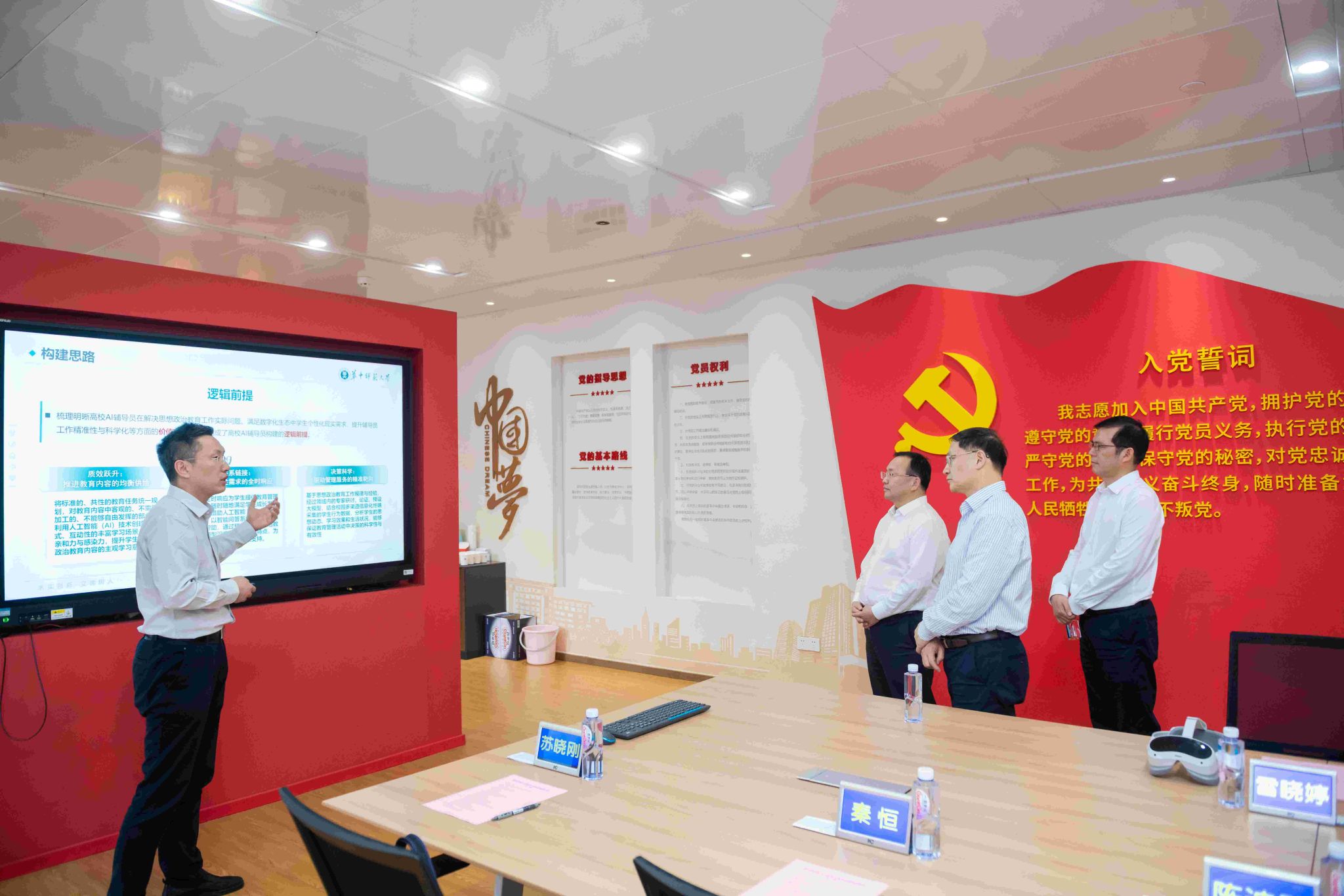 教育部思政司党建统战处、宣传教育处相关人员,开云手机网党委组织部、党委宣传部、党委学生工作部、校团委、保卫处、信息化办公室、人工智能教育学部、文学院等相关单位负责人参加调研活动。