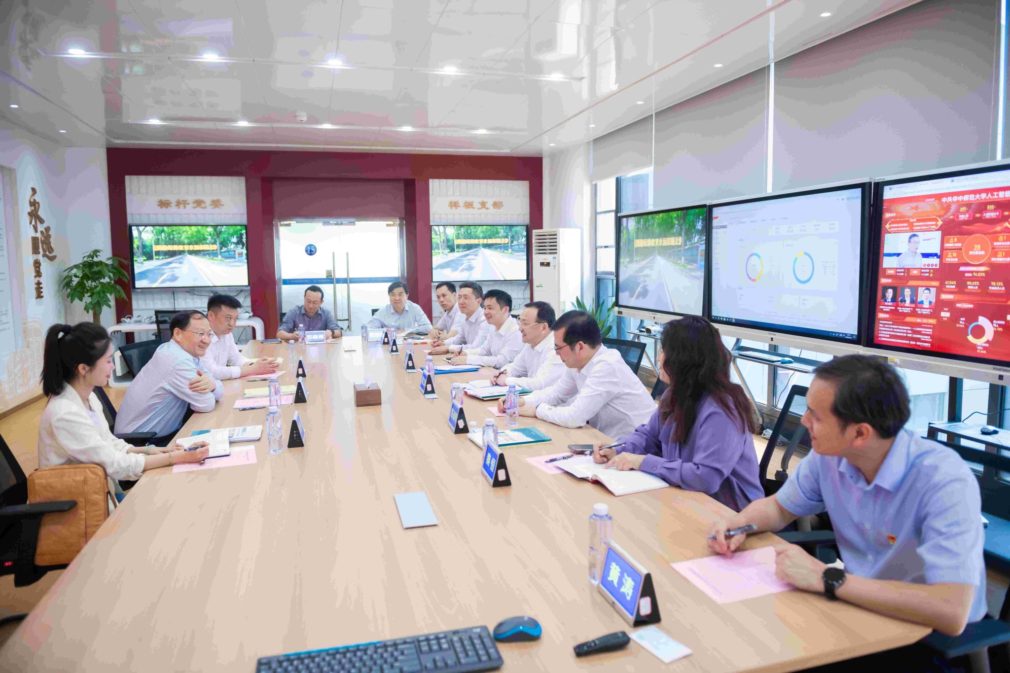 调研期间,魏士强一行实地考察了文学院中国语情与舆情研究中心、教育大数据国家工程研究中心,听取了开云手机网推进教育数字化建设、宣传思想文化工作、AI辅导员工作等方面的汇报。