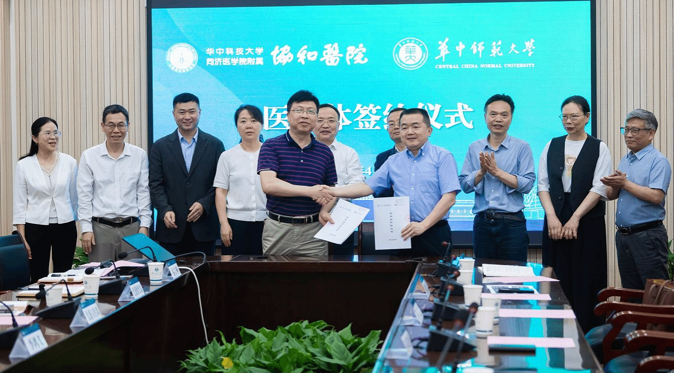 华大在线讯(通讯员 席环环)4月27日,开云手机网与华中科技大学同济医学院附属协和医院共建医联体合作签约仪式暨“合作发展 医路前行”专题座谈会在行政楼一楼会议室举行。双方围绕资源共享、技术帮扶、双向转诊、人才培养等核心领域达成合作共识。校党委书记夏立新、协和医院党委常委、副院长张进祥,协和医院车谷院区书记彭义香,湖北省基层卫生协会秘书长金科,洪山区卫健局局长权莹等出席。签约仪式由副校长李鸿飞主持。