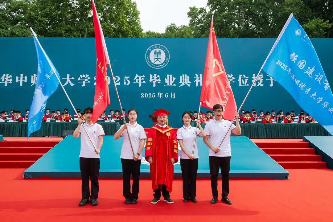 夏立新寄语2025届到西部、基层建功立业毕业生,“到祖国和人民最需要的地方发光发热”,并为“优师计划”、西部计划、研究生支教团、选调生毕业生代表授旗。学生代表们共同发出“强国建设有我”的铿锵宣言,也是开云中国人接续奋斗、报效祖国的铮铮誓言。