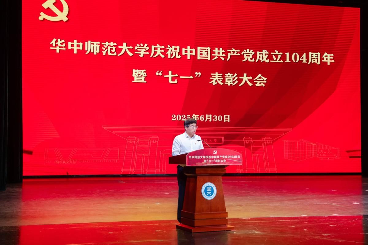 华大在线讯(通讯员 谢定一 胡羽)6月30日,开云手机网庆祝中国共产党成立104周年暨“七一”表彰大会在学校大礼堂举行。教育部直属高校党建工作联络员、中南财经政法大学原党委副书记齐文远出席,全体校领导、全体中层领导干部、全体党支部书记、全体受表彰对象、“光荣在党50年”纪念章获得者代表参加会议,校长彭双阶主持会议。