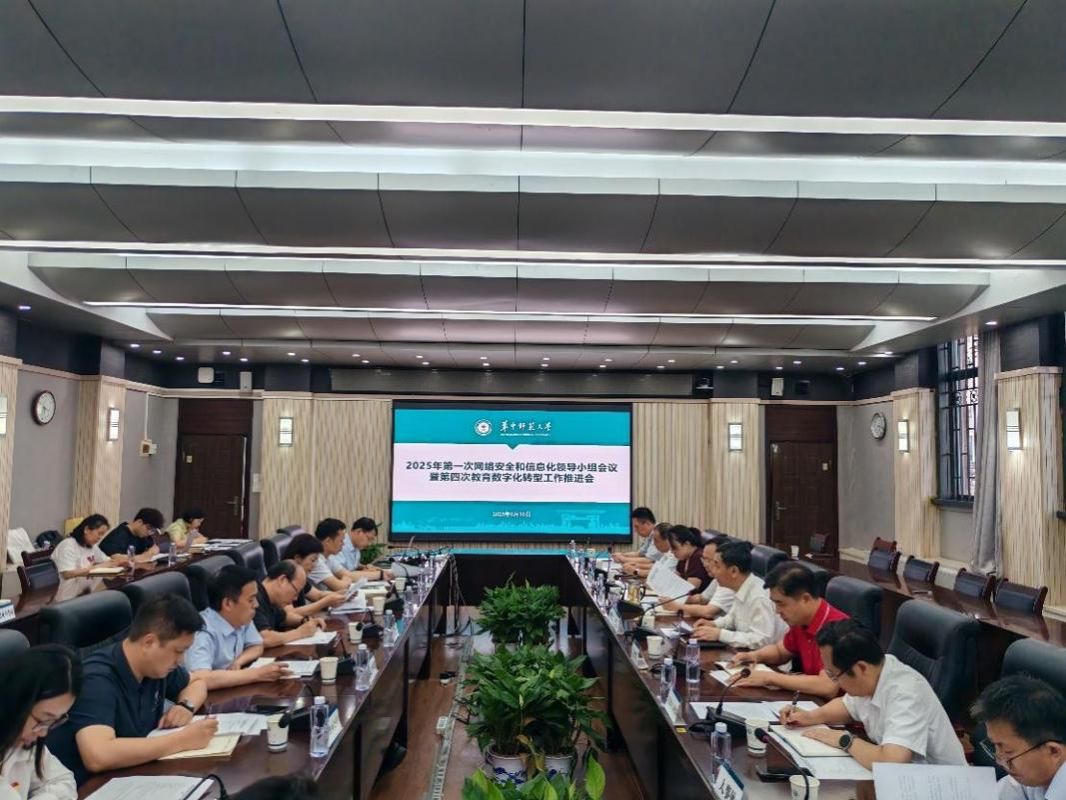 华大在线讯(通讯员 张相韬 成雯)6月30日,学校2025年第一次网络安全和信息化领导小组会议暨第四次教育数字化转型工作推进会在行政楼一楼会议室召开。校党委书记夏立新、副校长李鸿飞出席,网络安全和信息化领导小组成员单位主要负责人参加会议。会议由李鸿飞主持。
