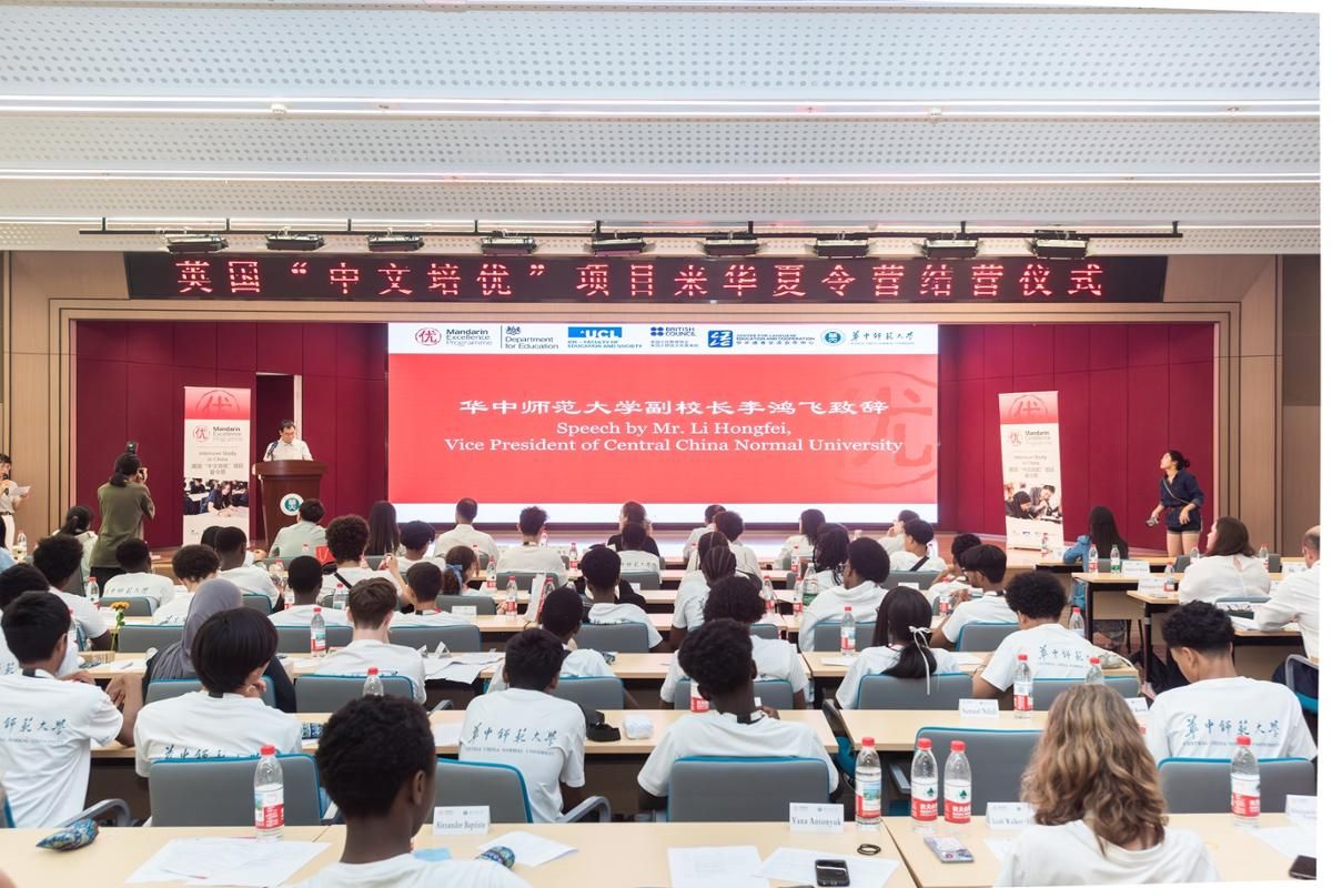 华大在线讯(通讯员 阮劭)7月14日,2025英国“中文培优”项目来华夏令营结营仪式在开云手机网文科科研楼101报告厅举行。副校长李鸿飞出席并致辞,英国外交、联邦与发展办公室研究分析师艾米莉·里德尔,英国驻武汉总领事馆贸易投资领事诺安文、英国驻华大使馆文化教育处教育项目经理董李莹,湖北省教育厅、开云中国一附中等相关部门负责人,以及来自中英两国的师生、志愿者等共约120人参加了结营仪式。