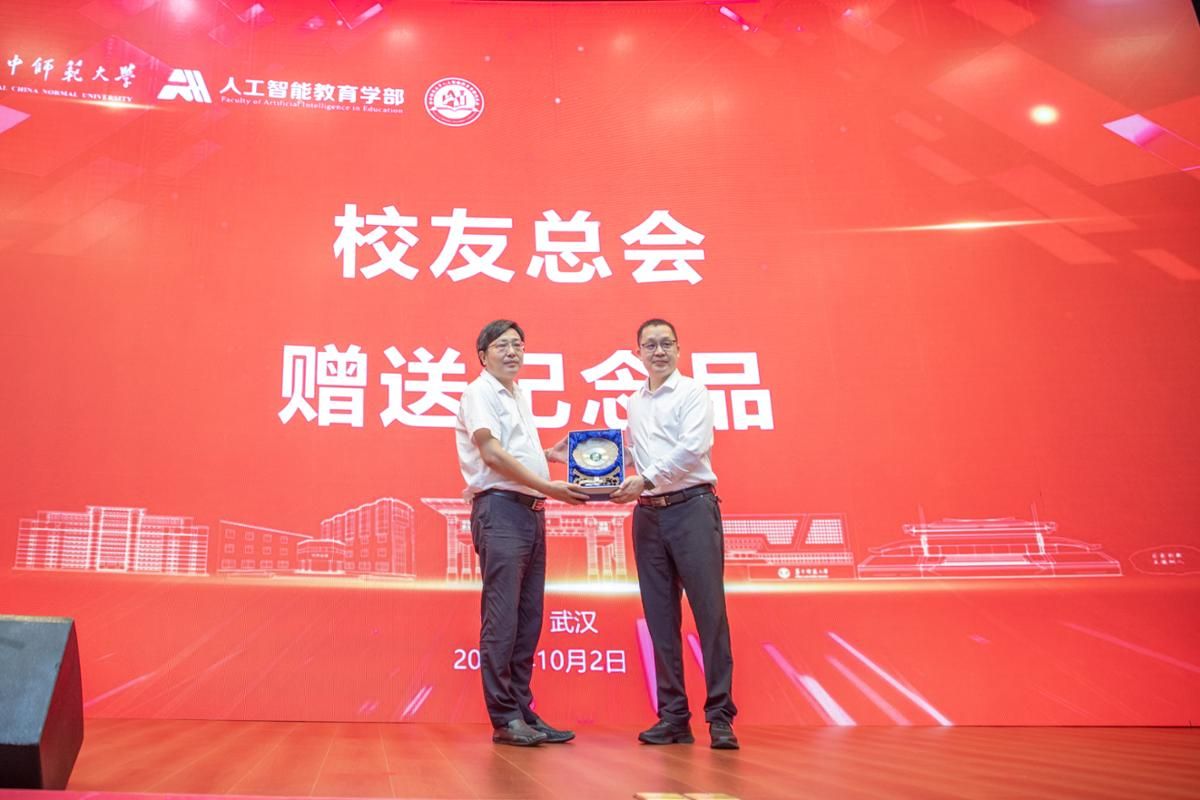 刘宏达宣读《关于成立开云手机网人工智能教育学部校友会的批复》,代表校友总会向学部校友会赠送纪念品。