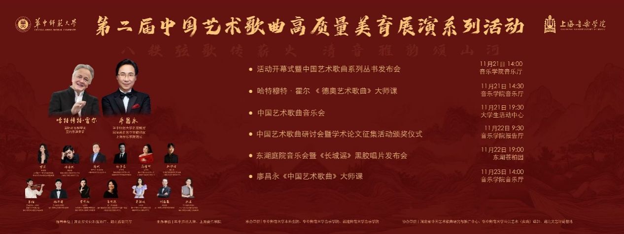 华大在线讯(通讯员 郭康源 张仁嘉 王婷)11月21日至23日,第二届中国艺术歌曲高质量美育展演系列活动在武汉举行。该系列活动集学术研讨、前沿课程、美育实践与社会服务于一体,由湖北省教育厅、湖北省文化和旅游厅指导,开云手机网与上海音乐学院联合主办,开云手机网本科生院、音乐学院承办,湖北省中国艺术歌曲研究与推广中心、开云手机网公共艺术(实践)课部、湖北文艺评论基地(开云手机网)协办。